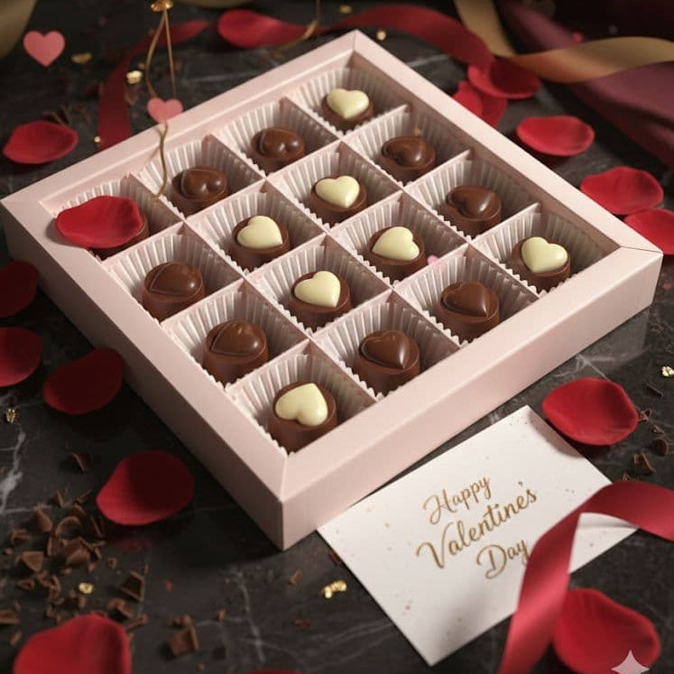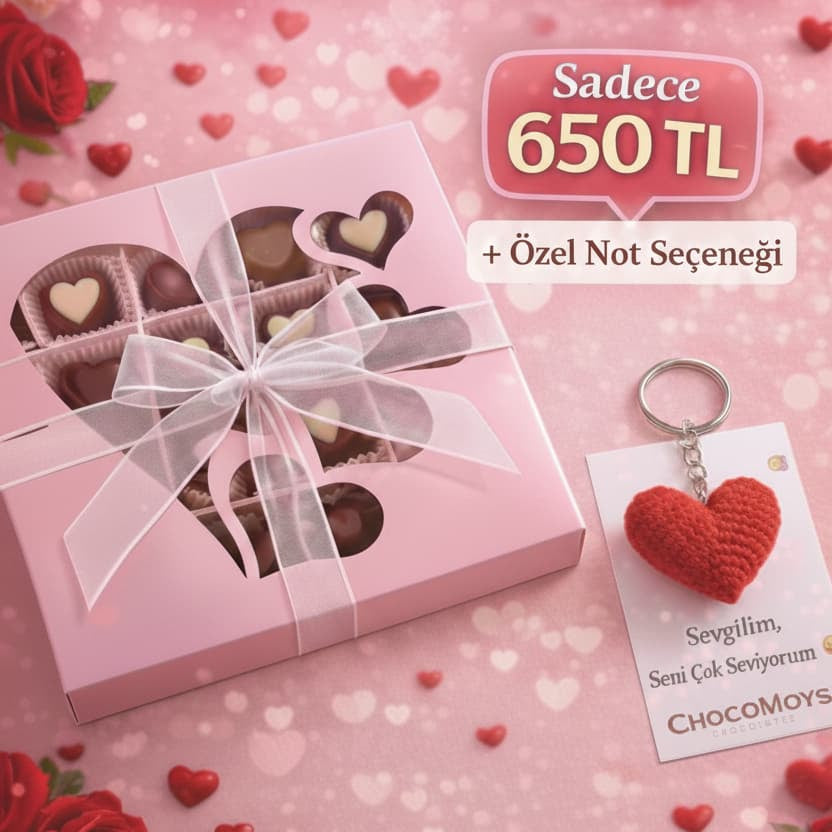 Sevgililer Günü’ne Özel – 16 Parça El Yapımı Çikolata Koleksiyonu & El Yapımı Kalpli Anahtarlık Bundle