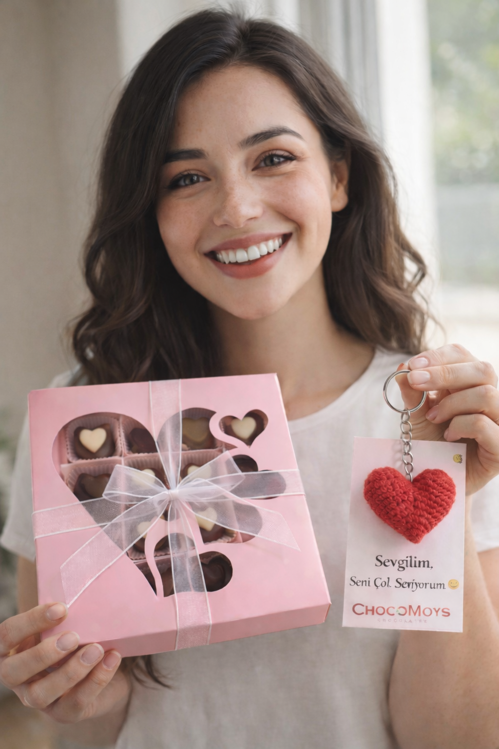 Sevgililer Günü’ne Özel – 16 Parça El Yapımı Çikolata Koleksiyonu & El Yapımı Kalpli Anahtarlık