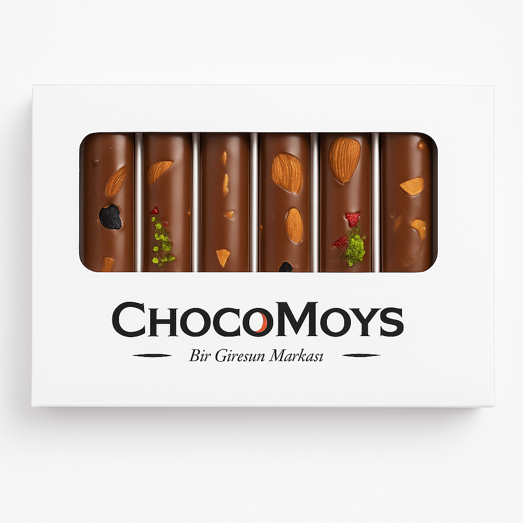 Çikolatamız, Giresun fındığı, Antep fıstığı, badem, kuru çilek ve kuru üzüm parçalarıyla zenginleştirilmiştir.